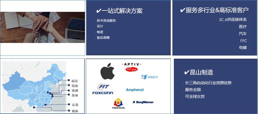 主營高標準非標定制設(shè)備,3C、電鍍、沖壓、FPC、成型等多行業(yè)上下料設(shè)備,視覺類軟硬件設(shè)備,并提供相關(guān)技術(shù)支持和整套解決方案。
